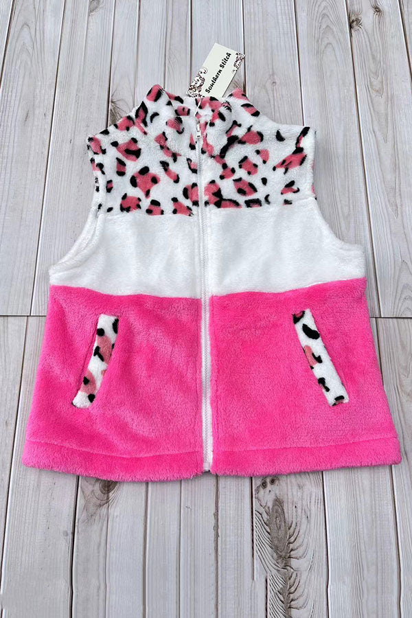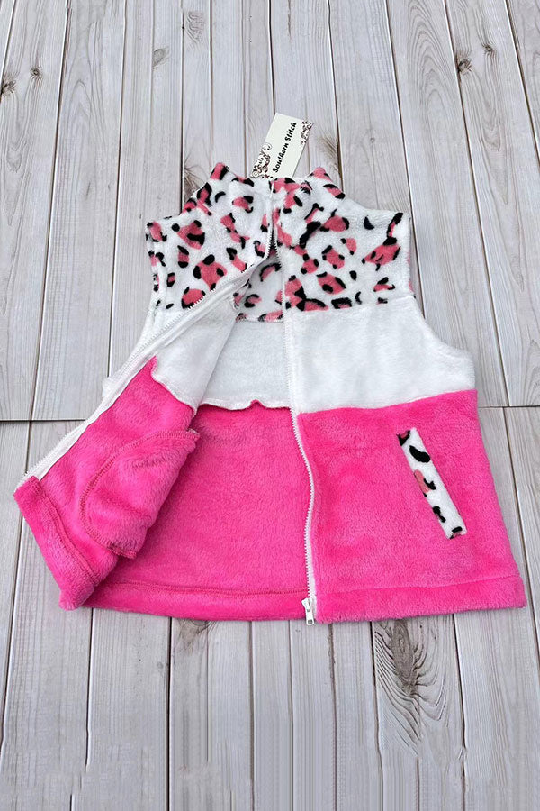 Leopard & white & pink fleece sleeveless girls vest XCH02030