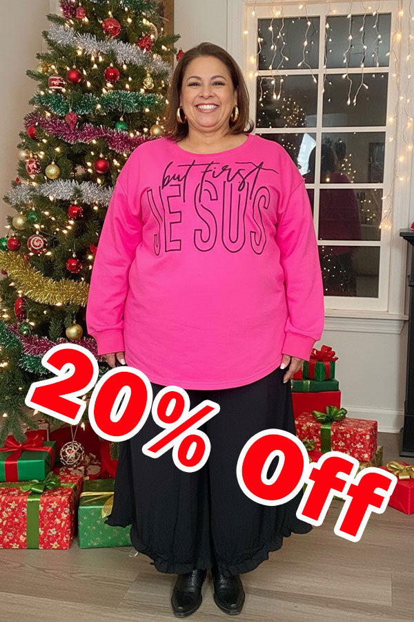Plus size "but first JESUS" embroidery Christmas hot pink women sweatshirt XCH16561