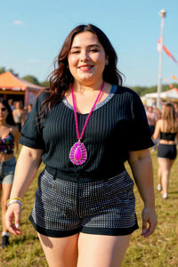 - Rhinestone black women shorts with pockets