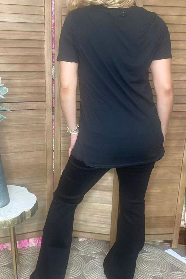 "Merry Christmas"printed short sleeve black women t-shirt DLH10321