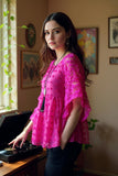 Women's blouse wholesale Fuchsia dots & lace short sleeve baby doll top BQ15351 (CS10
