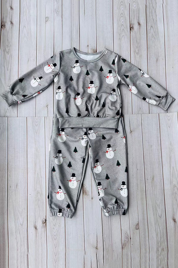Christmas tree & snowman printed top & pant 2pc boy sweatshirts set DLH2890 A15S1