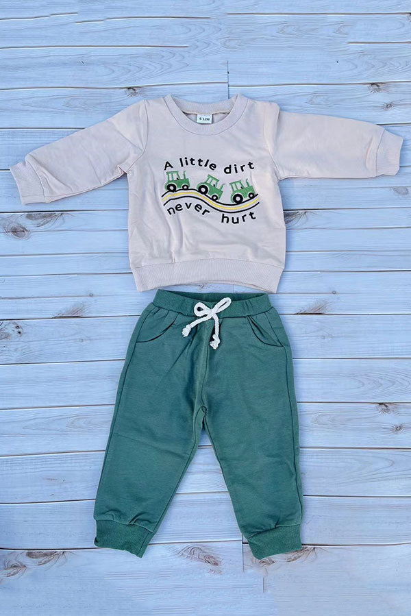 A little dirt never hurt embroidery long sleeve top & green pant 2pc baby set 250940M
