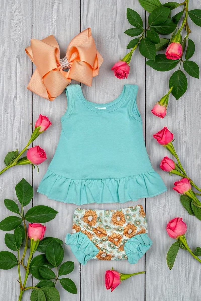Cute Aqua tank top & floral print bloomer baby sets 1166WY A14S5