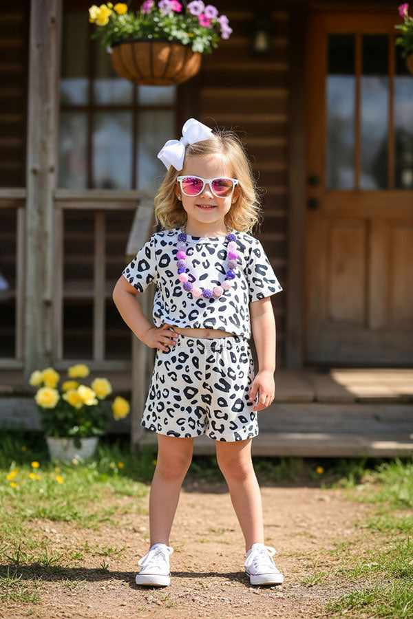 Girls boutique clothing suppliers leopard printed top & shorts 2pcs sets XCH04030 (A3S7)