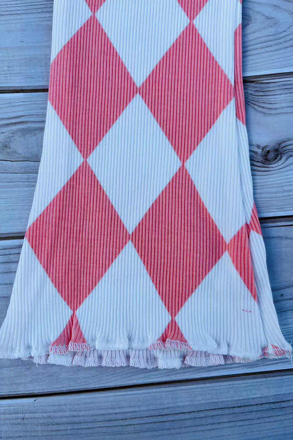Ribbed knitted fabric pink checkered flare leg girls pant 250947M A8S3