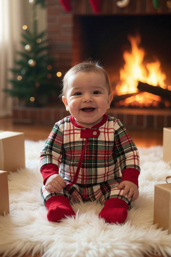 Christmas plaid long sleeve unisex baby romper with double zippers DLH2839
