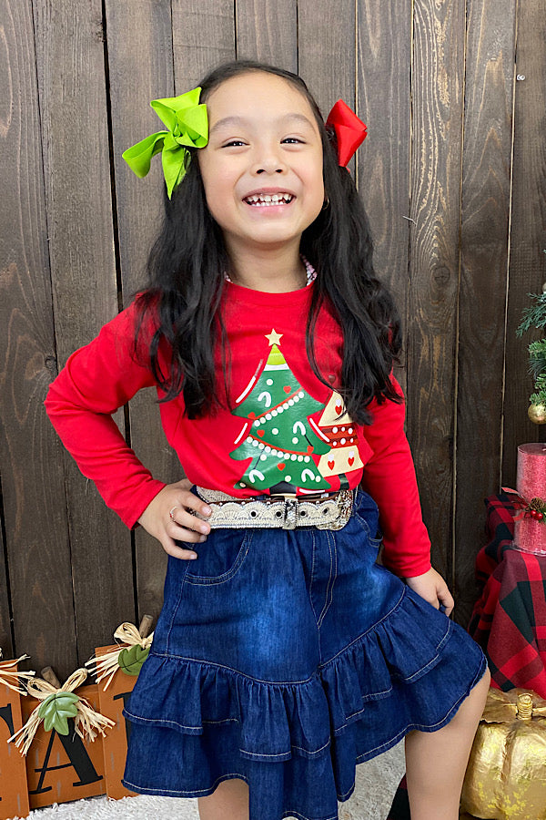 Christmas tree t-shirt w/denim skirt set DLH0824-9 A9S6