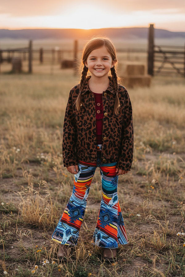 Denim Brown leopard short style long sleeve girls jacket DLH2583 (A11S5)