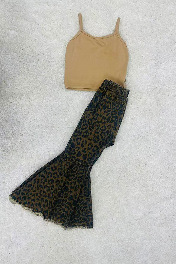 Western Kids Tan suede fringe tassel girls top DLH2615