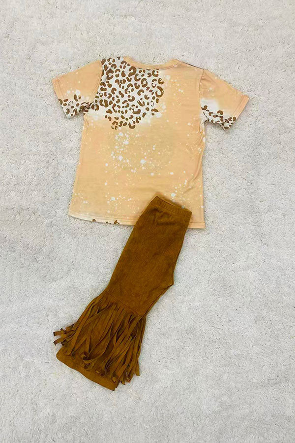 Beige Mini prints leopard short sleeve girls t-shirt DLH2724 A16S5