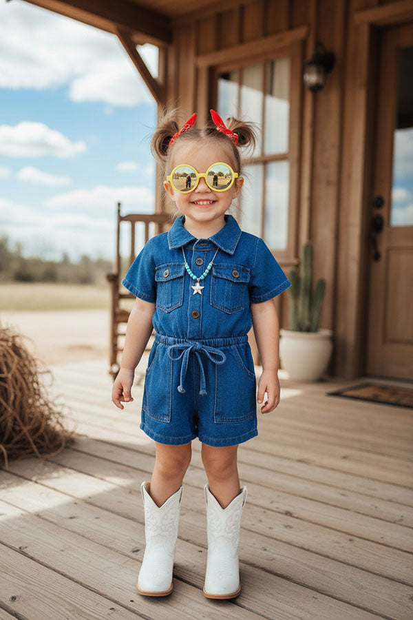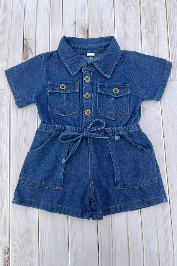 Dneim fabric short sleeve one piece girls overall jumpsuit 251284M A1S12