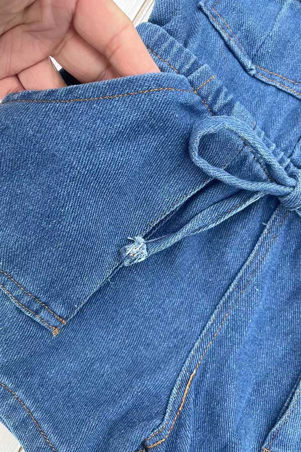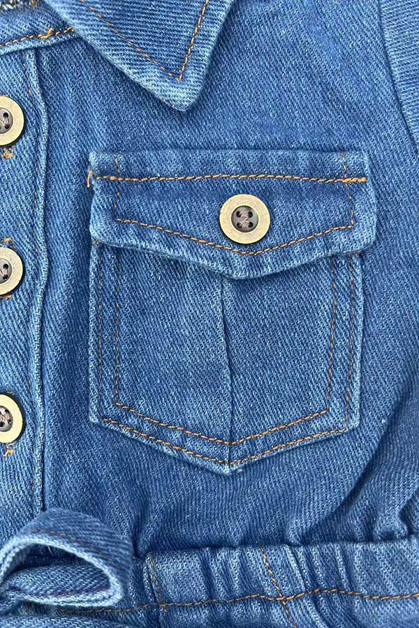 - Jumpsuit features with denim fabric & pockets & buttons.