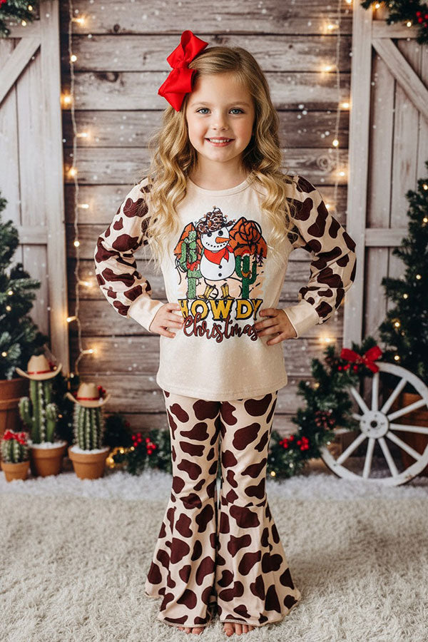 "HOWDY Christmas" snowman prints top bell bottom girls sets XCH0018-7H A9S6