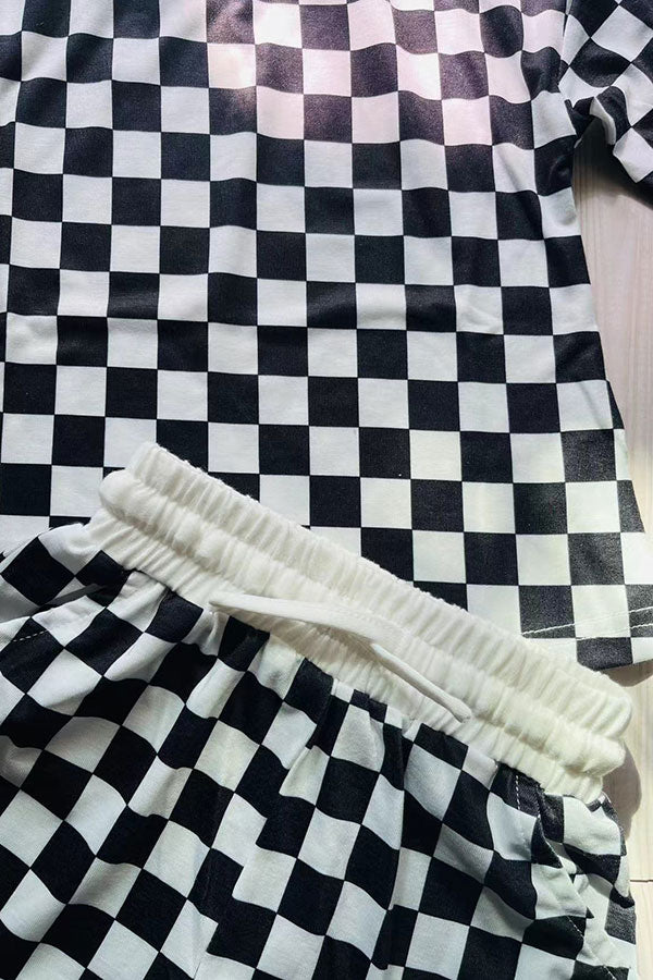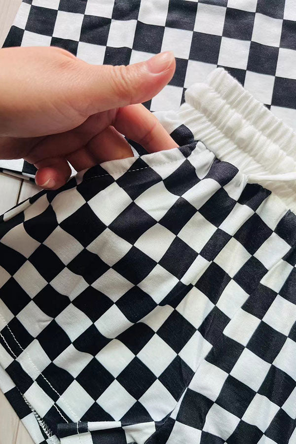Mom and me checkered printed long sleeve top & shorts 2pc girls sets XCH04048 A9S1