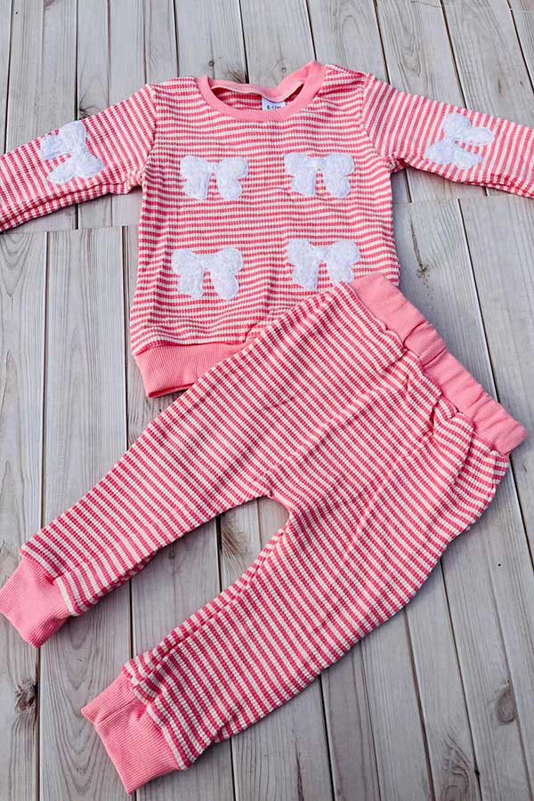Pink knitted long sleeve top & white bow 2pc girls sets 251281M