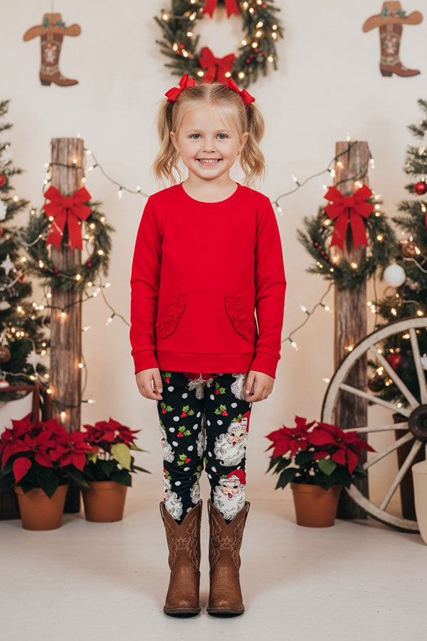 Red long sleeve pocket top santa legging christmas girls sets DLH2806 A9S1
