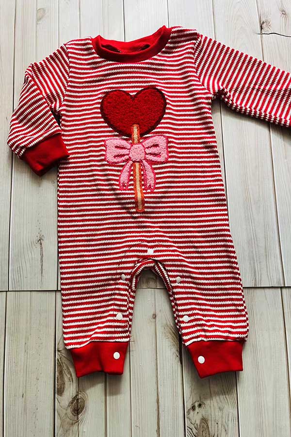 Red stripes knitted long sleeve hearts embroidery baby romper 251250M