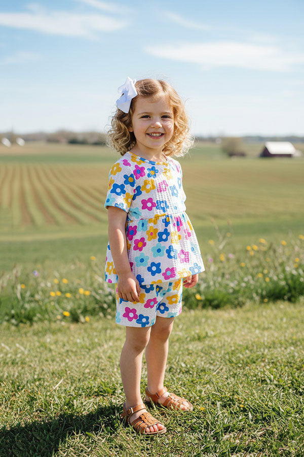 Shop Floral printed short sleeve top & shorts 2pc girls sets XCH04023 (A9S2)