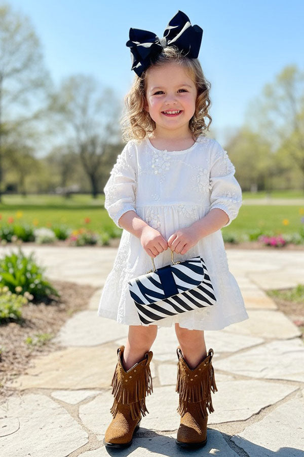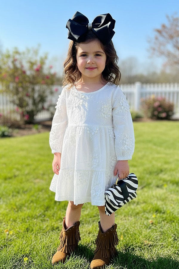 XCH0020-7H White embroidery & lace long sleeve gils swirl dress (A2S9)