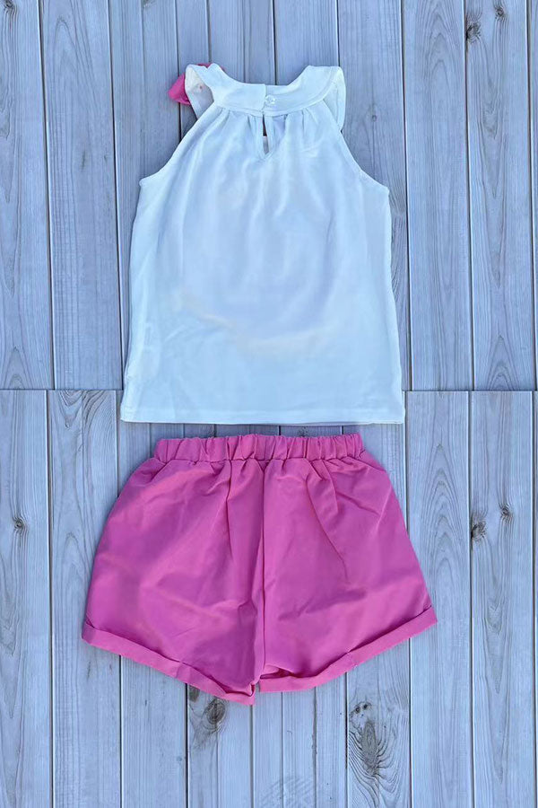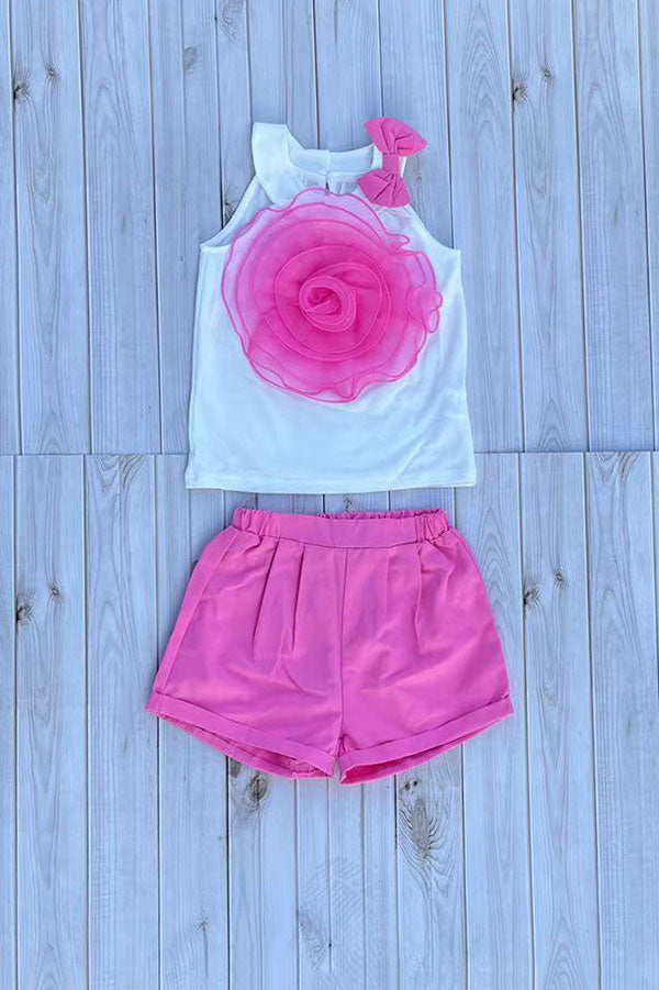 Chest rosette halter top & pink shorts 2pc girls set 251300M A3S1