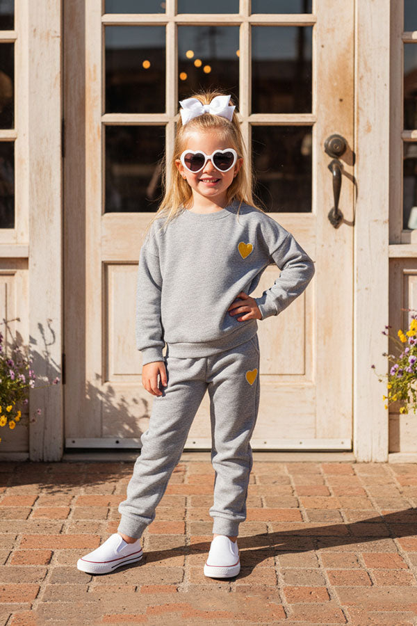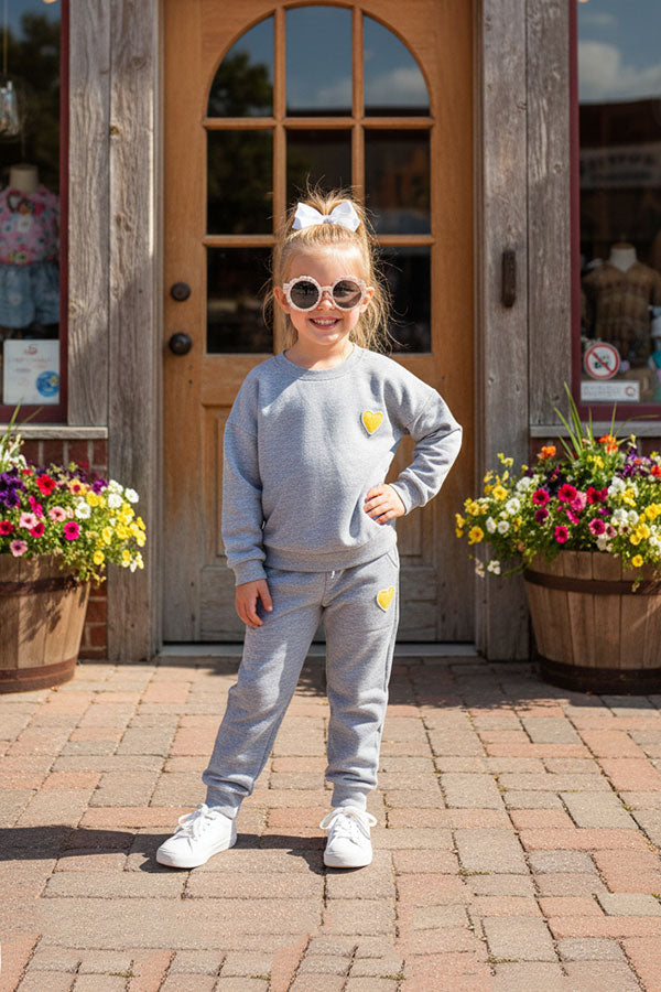 Heart patch & grey long sleeve pullover sweatshirts 2pc girls sets DLH2699