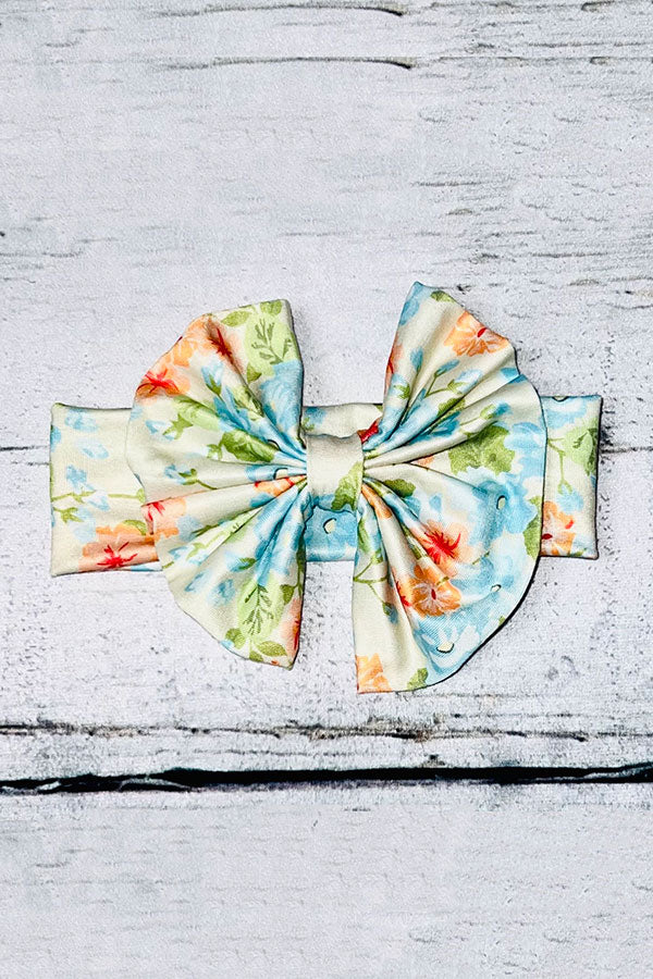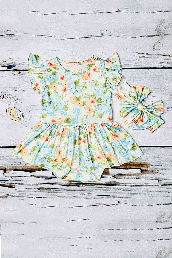 Light blue & peach floral print baby onesie w/matching headband DLH1224-07 (A13S2)