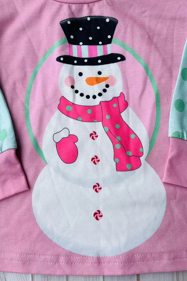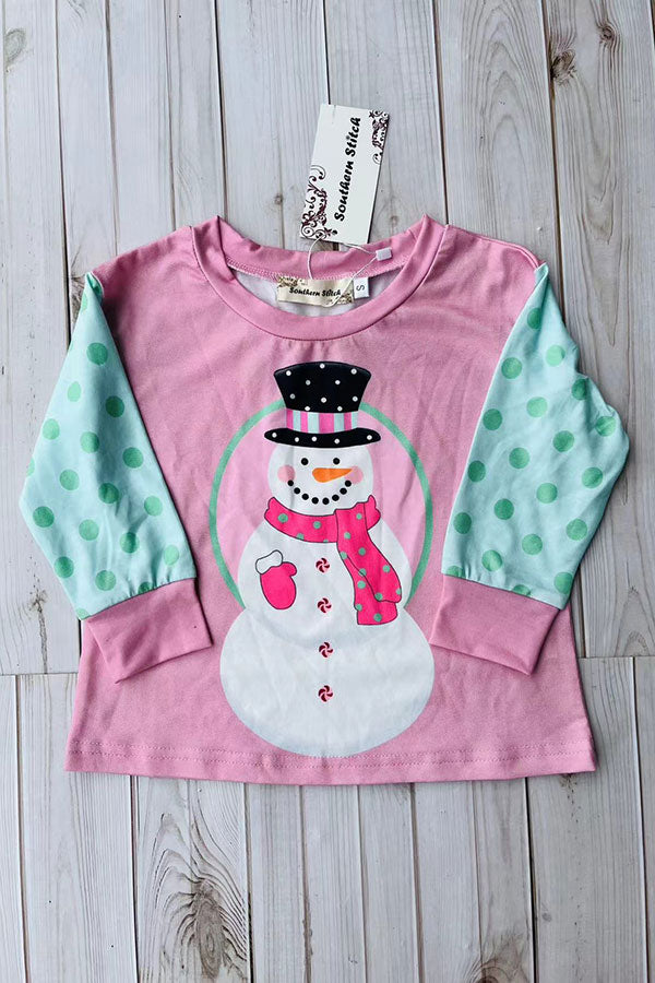 Mom and me Christmas snowman printed pink long sleeve girls t-shirt XCH01017