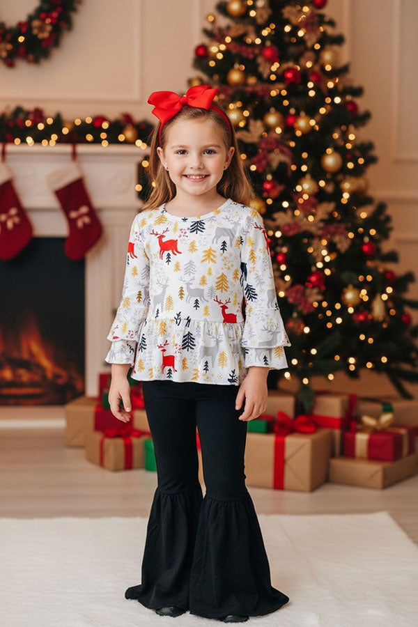 Multi Color Deers & Trees print bell-bottom girls clothing sets XCH0013-17H A9S8