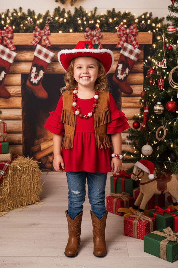 Red triple ruffle half sleeve girls top XCH01004 (A7S7)
