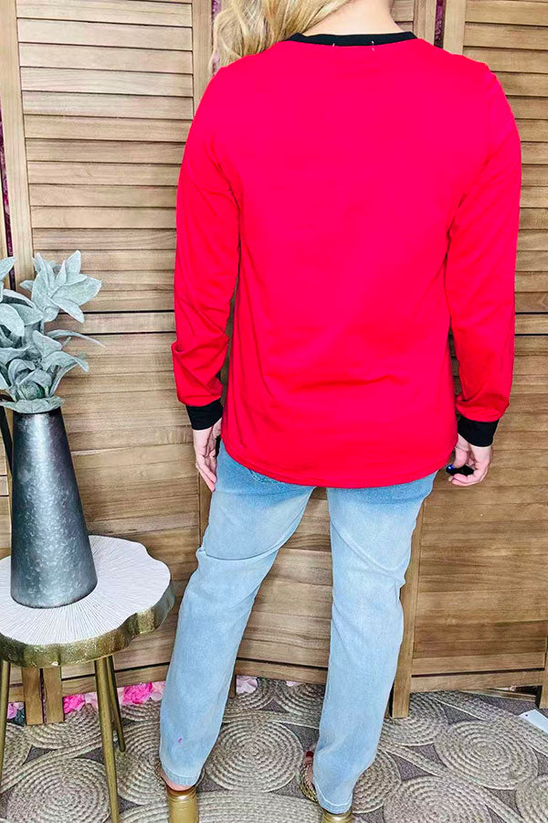 Christmas snowman printed red long sleeve women t-shirt DLH9749 (IS8)/Afloor