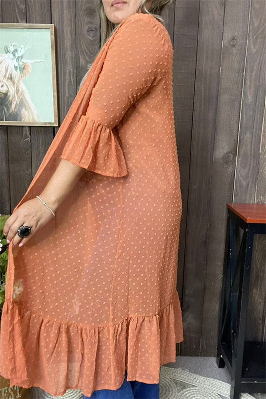 • Cardigan with Small dots w/ruffle 3/4 sleeve & bottom coral color women cardigan