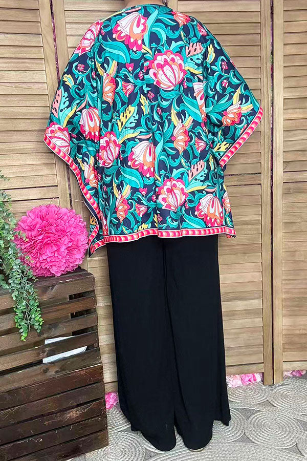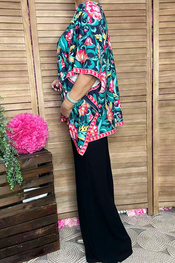 Multi color floral printed poncho casual loose women blouse GJQ16326(CS2)