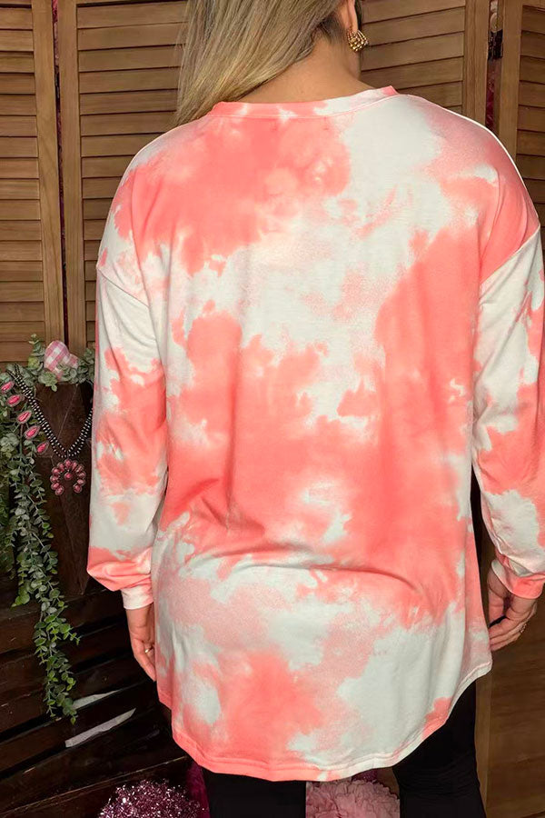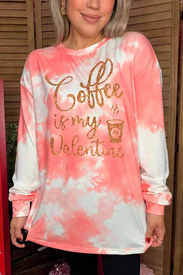 Glitter "Coffee is my Valentine" long sleeve coral tie-dye women shirts XCH14621