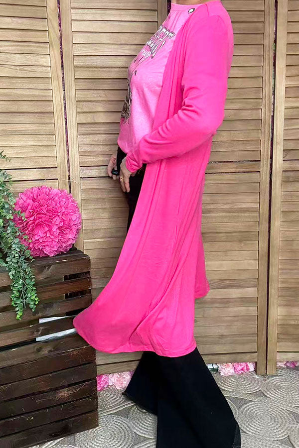 - Cardigan features with pink soft fabric with long sleeves and side pockets.