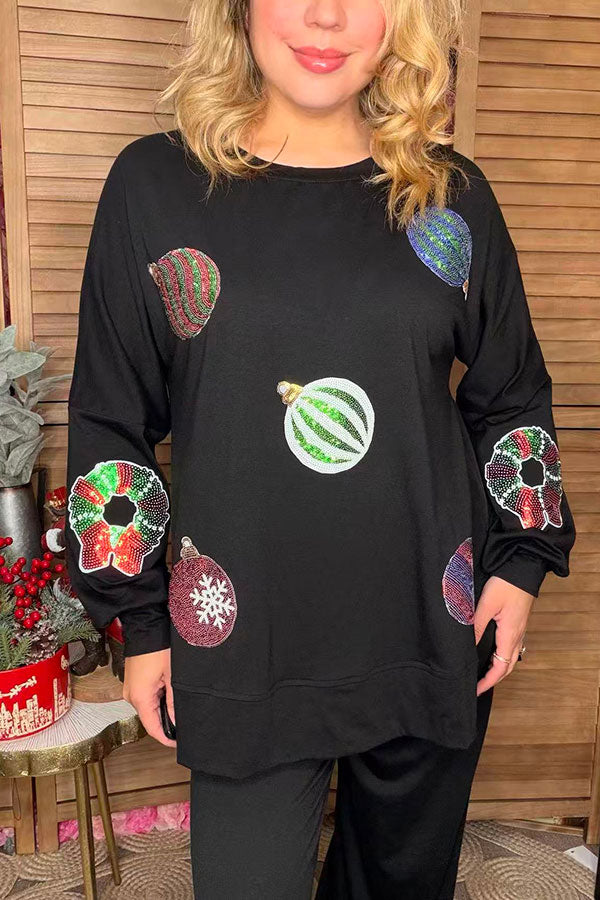 Sequin christmas element round neck long sleeve sweatshirts w/slit XCH16536 BS6