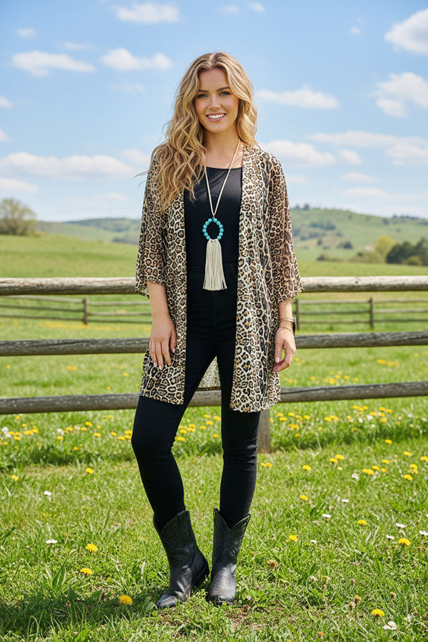 Sheer Leopard printed slit side long sleeves women cardigan FW13037 (AS6)/AS7