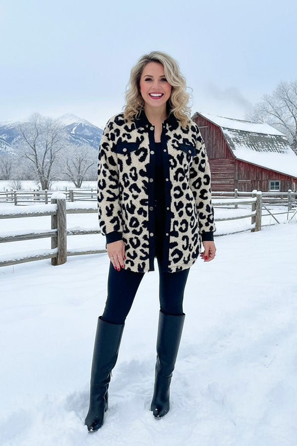 Sherpa leopard long sleeve women coats/jacket with buttons up BQ15490