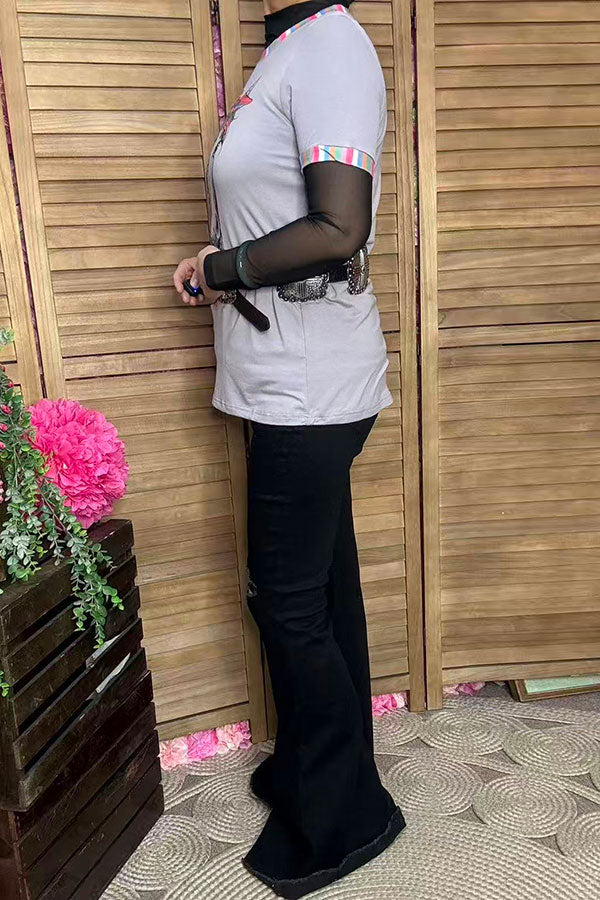 Southern Stitch horse printed grey short sleeve top DLH11778-1
