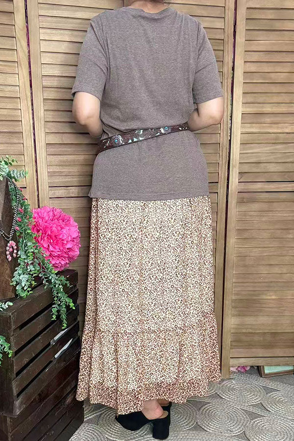 Women's clothing suppliers leopard printed long skirt elastic waist band GJQ15827 IS12