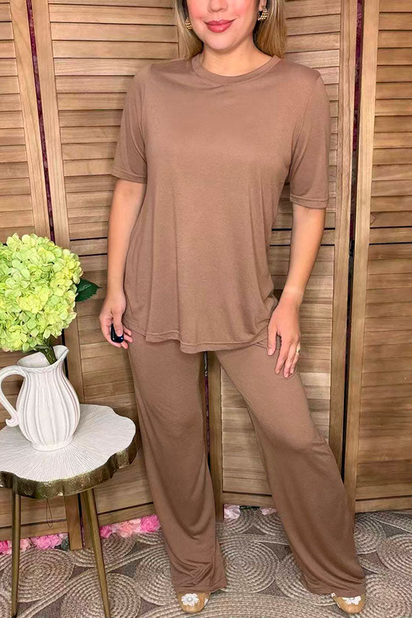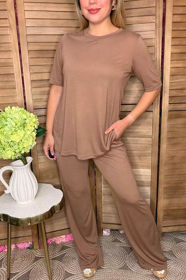 Khaki short sleeve top & straight pant 2pc women outfit sets GJQ15828 (GS7)