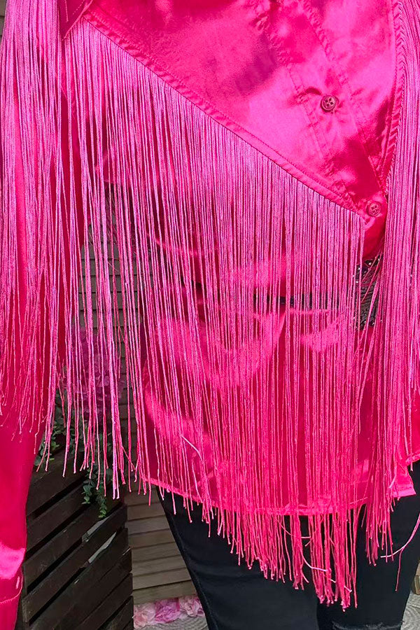 Southern Stitch Western Pink button up long sleeve blouse w/fringe tassels XCH13345 (FS7)