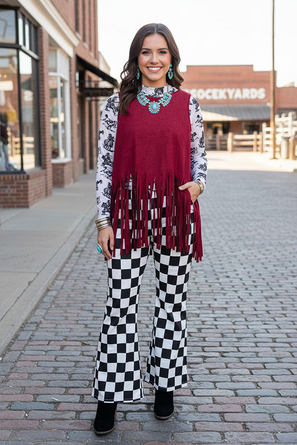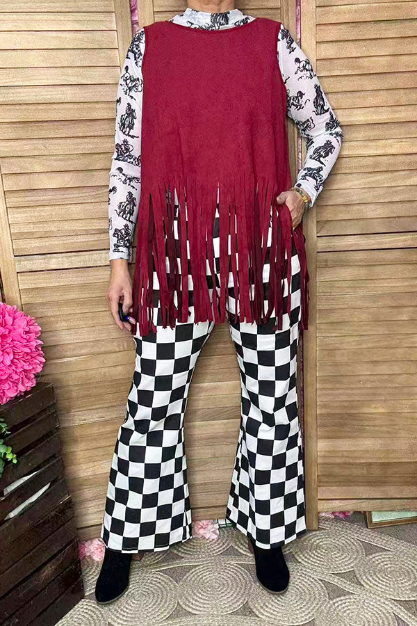 Suede burgundy tank top w/fringe tassels GJQ13295 CS7
