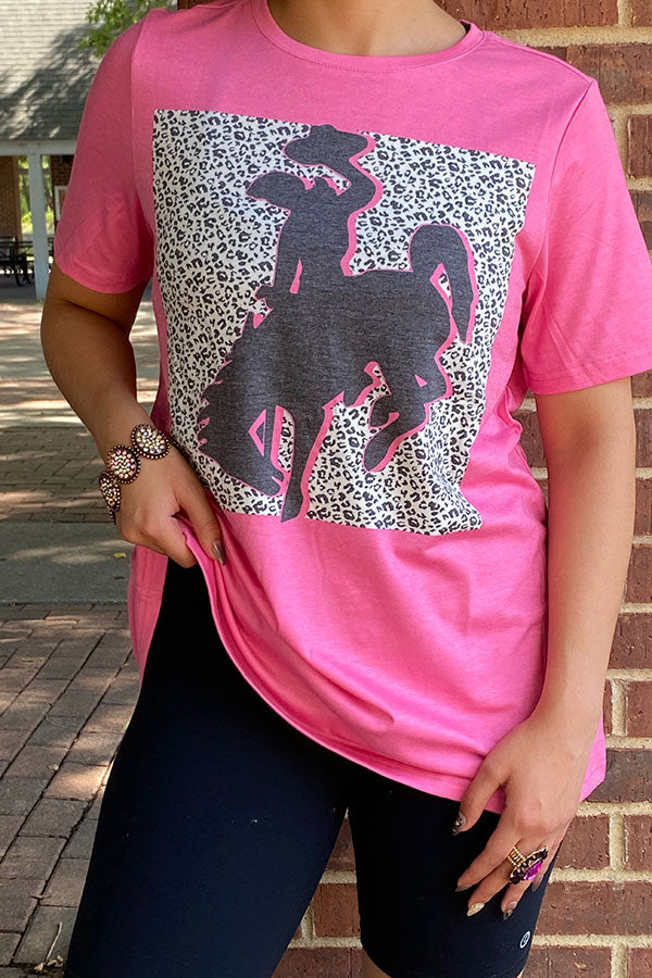 Western PINK TOP W/ BRONC RIDER GRAPHIC Women T-shirt XCH14127 CS8