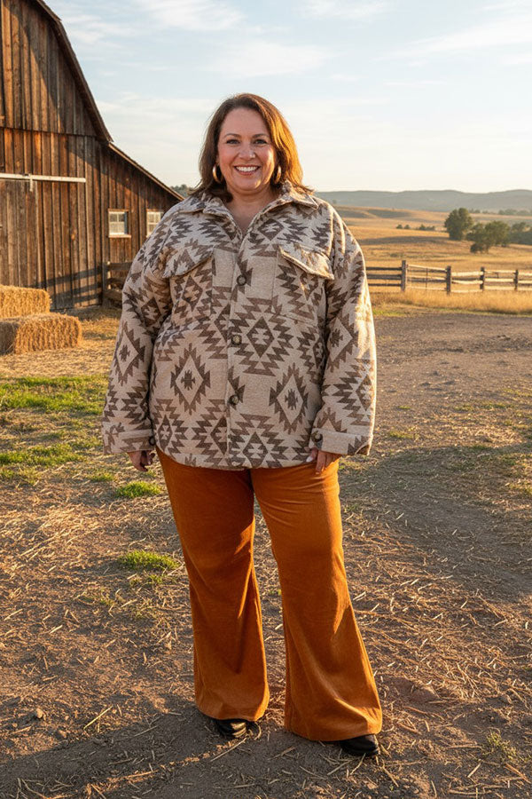 Wholesale aztec long sleeve women shacket w/buttons and pockets DLH14232