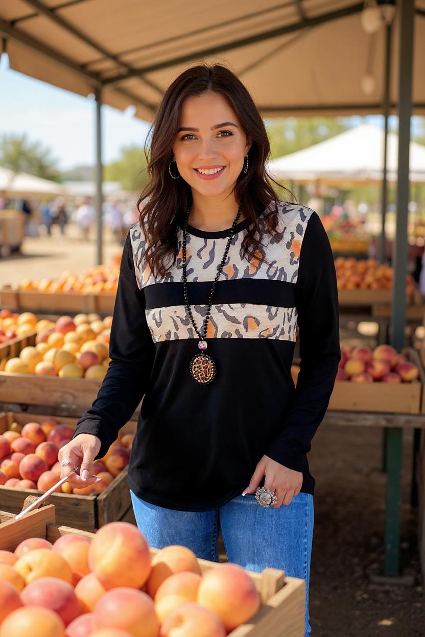Black & leopard printed long sleeve women's top XCH10016 (CS12)