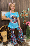 - Cow printed bell bottom pant with flare legs to match with the top as a set.