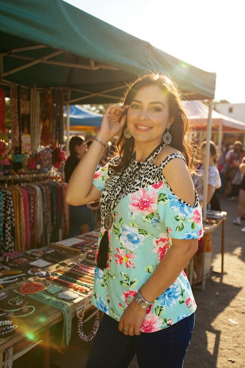 GJQ10637 Half leopard/floral top half w/cold shoulder short sleeve women tops (ES1)