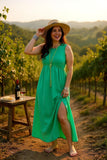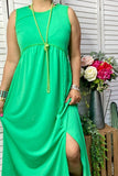 GJQ14594-2 Green sleeveless side slit women long dress(BS6 AS14