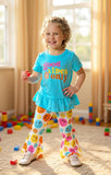 "good vibes only" mint top smile face bell bottom 2pcs girls sets XCH0333-12H (A6S3)